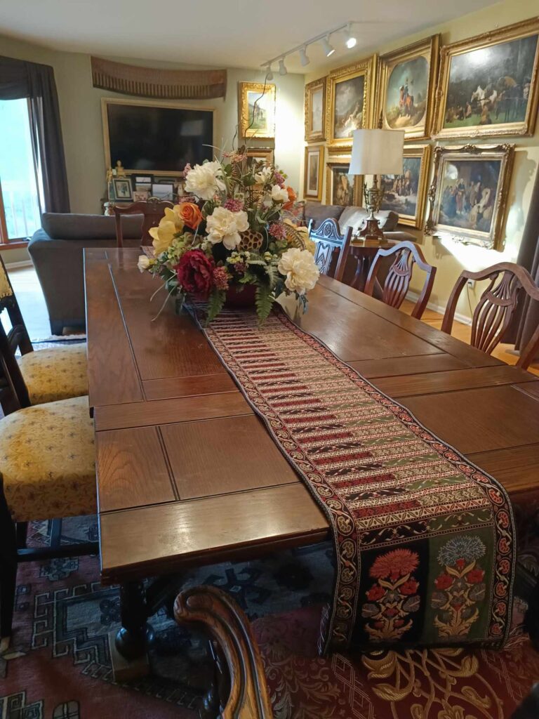 Brighten up our Christmas dinner table with a period table runner.