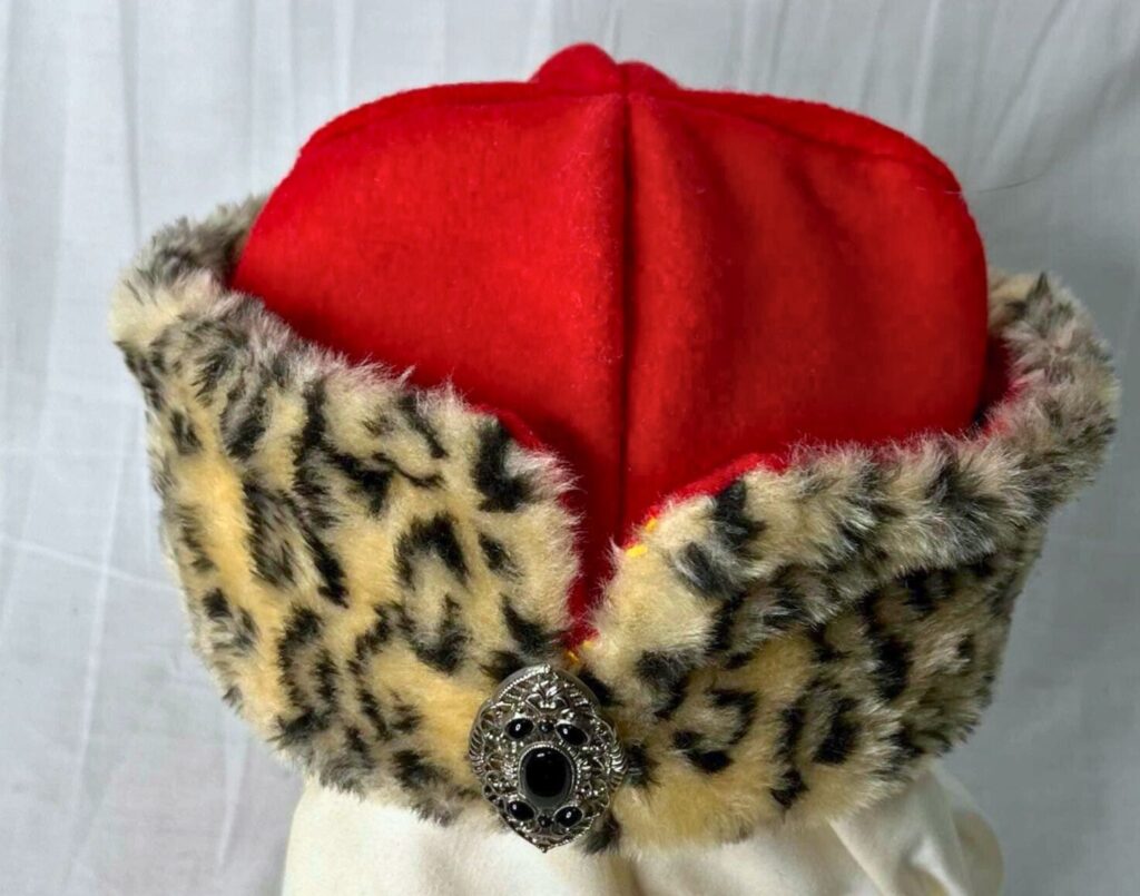 Leopard and other exotic animals were worn by the wealthiest knights in Central Europe during this time period. These are an esential part of your Polish or Lithuanian kit. These of course are made out of faux fur fabric today, and are held in place by historicly inspired hand made clasp sets from Poland.