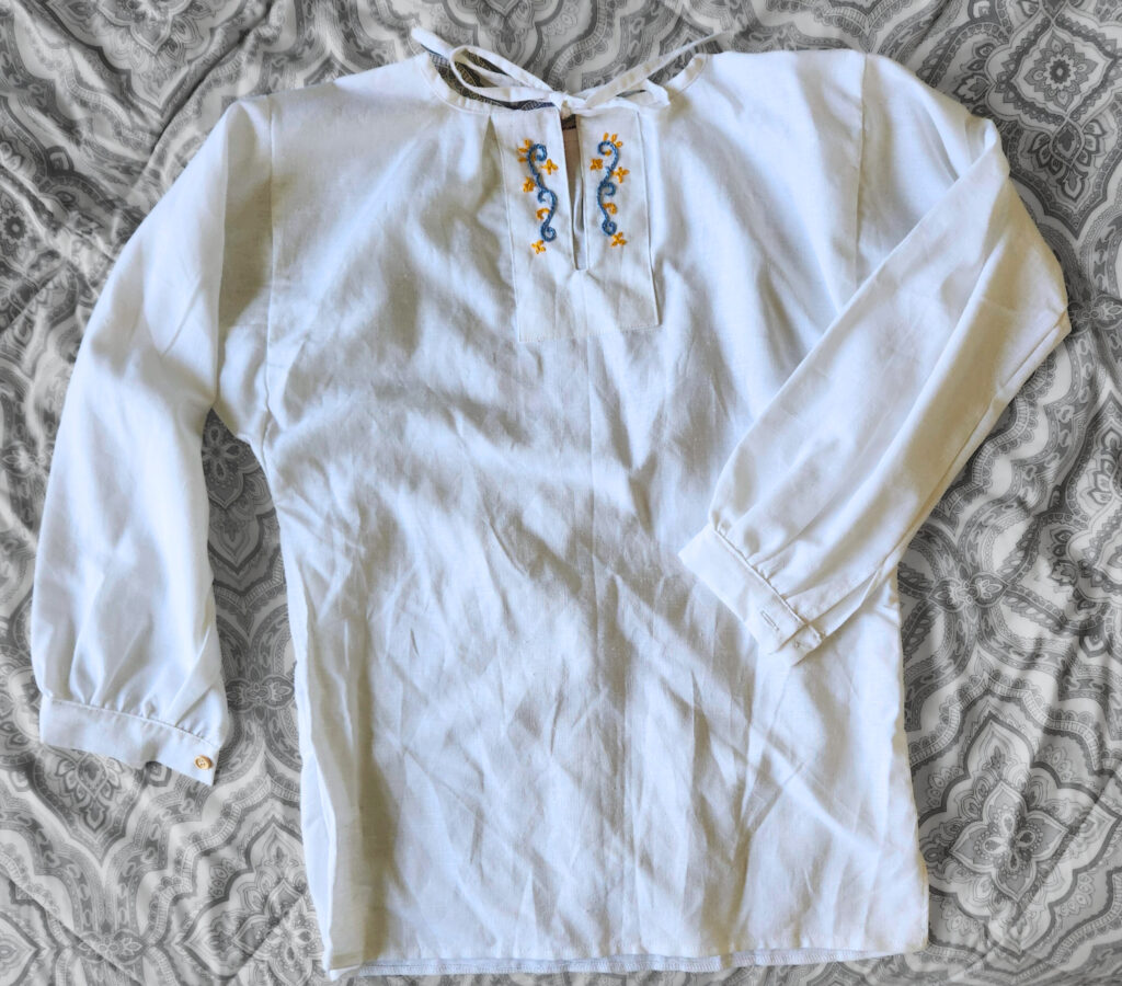 Linen undershirts would be worn under żupan by men or under dresses by ladies. These come in plain, or with hand embroidered stitching at the collars.